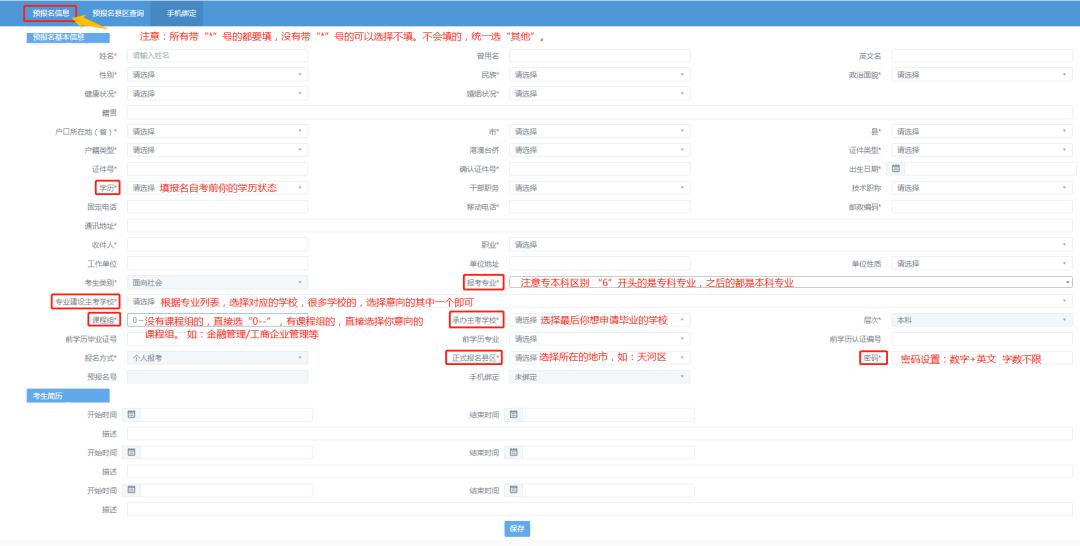 【注意】:考生预报名成功后还必须验证个人手机并绑定后方能进行正式报名。
