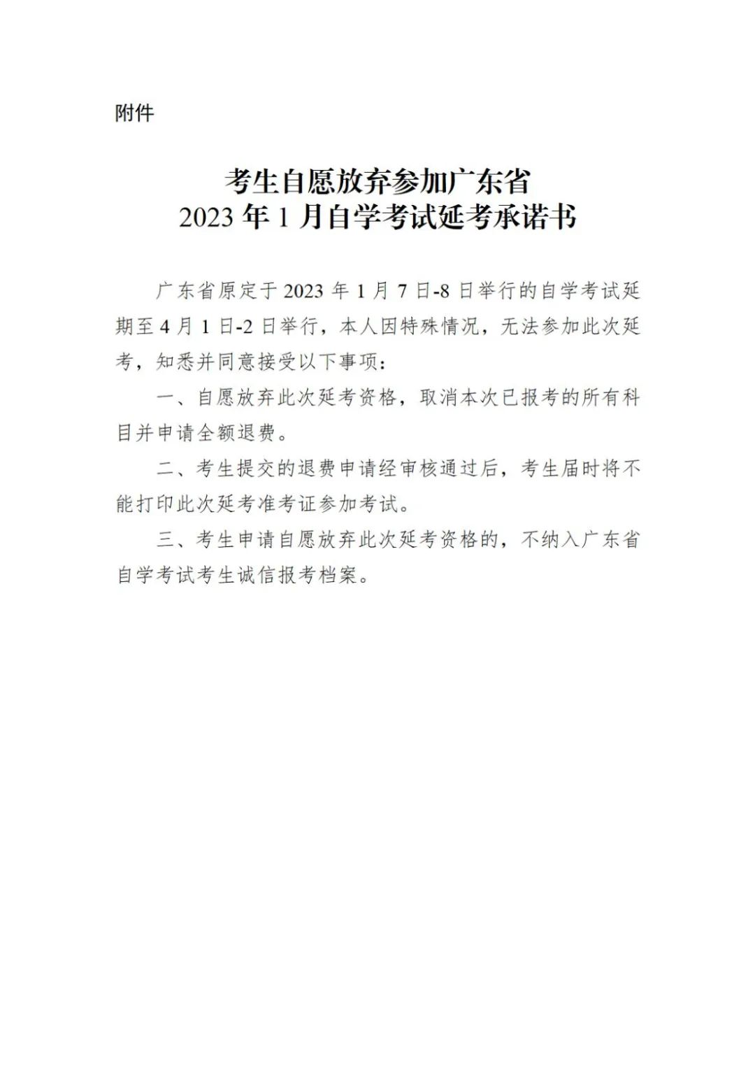 附件:《考生自愿放弃参加广东省2023年1月自学考试延考承诺书》