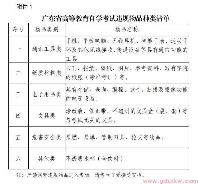 请考生自行准备好考试需要的相关文具,如2B铅笔、黑色字迹的钢笔或签字笔、马克笔、直尺、三角板、圆规、橡皮擦等,除必要文具之外任何物品不准带入考场(《广东省高等教育自学考试违规物品种类清单》见附件1)。严禁携带任何通讯工具(如手机、对讲机及其他无线接收、传送设备)、电子记事本、电子存储记忆录放设备、照相机、涂改液、修正带等与考试无关的物品进入考场。