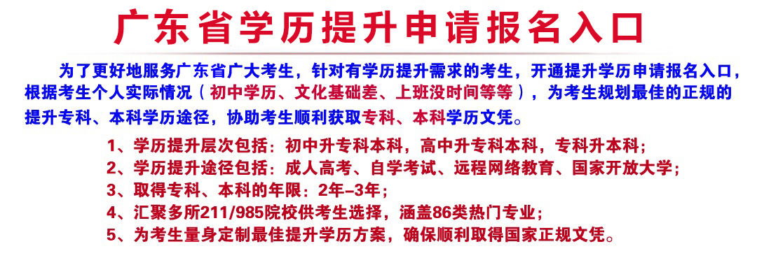 点击进入 >> 广东省高等教育自学考试官方报名入口